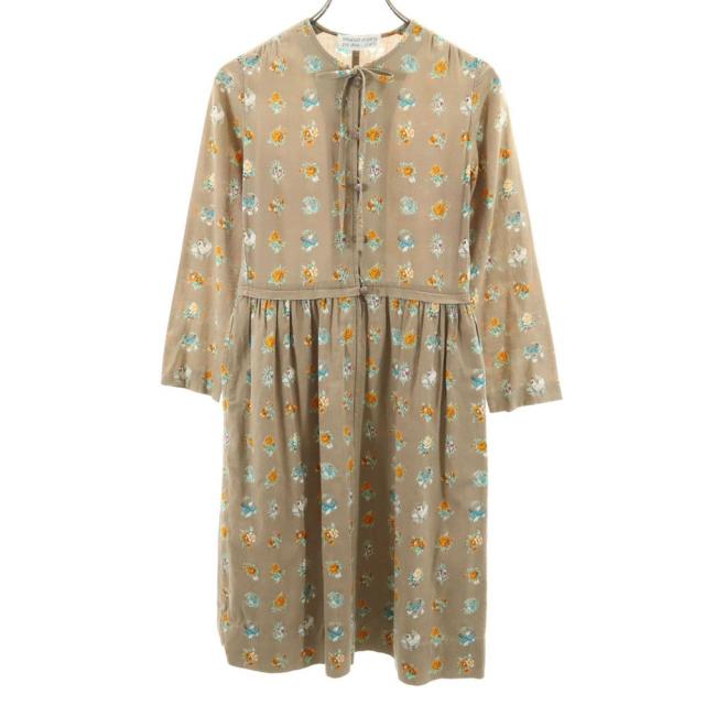 エマニュエルウンガロ 花柄 7分袖 膝丈ワンピース 9 ブラウン emanuel ungaro レディース