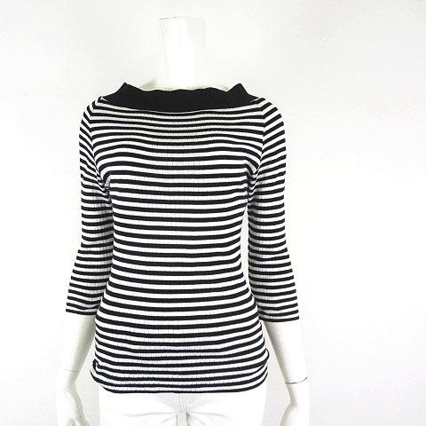 【中古】スピック&スパン Spick&Span リブ ニット カットソー ボーダー 薄手 コットン ボートネック 7分袖 M 白 黒