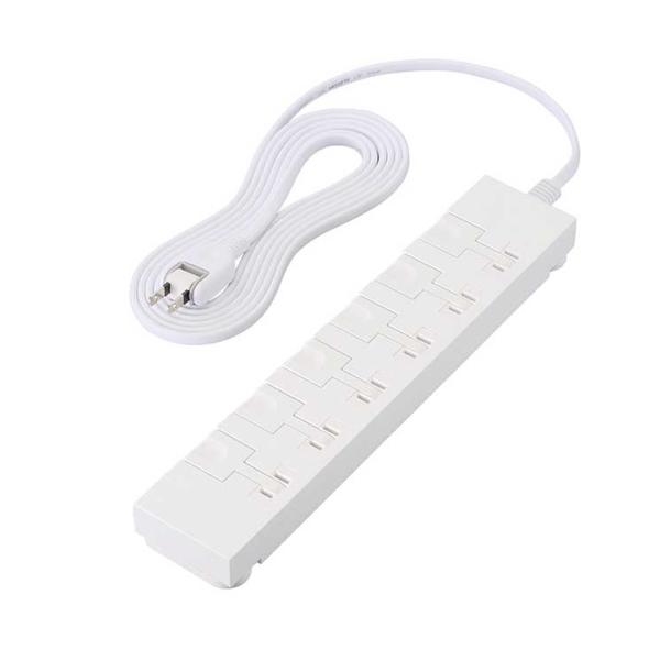 電源タップ 延長コード コンセント 3m 2P 6個口 片手で抜けるレバー付 ほこりシャッター 絶縁キャップ 雷ガード スイングプラグ 吊り穴タグ付 ホワイト