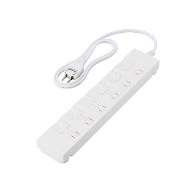 電源タップ 延長コード コンセント 1m 2P 6個口 片手で抜けるレバー付 ほこりシャッター 絶縁キャップ 雷ガード マグネット スイングプラグ ホワイト