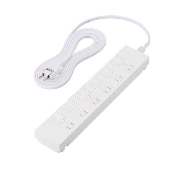 電源タップ 延長コード コンセント 3m 2P 6個口 片手で抜けるレバー付 ほこりシャッター 絶縁キャップ 雷ガード マグネット スイングプラグ ホワイト
