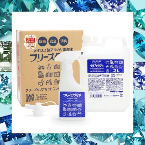強アルカリ電解水 pH13.2以上 ブリーズクリア 300mlスプレーボトル+2L詰替 業務用 コック付き マルチクリーナー 油汚れ・アルカリ電解水