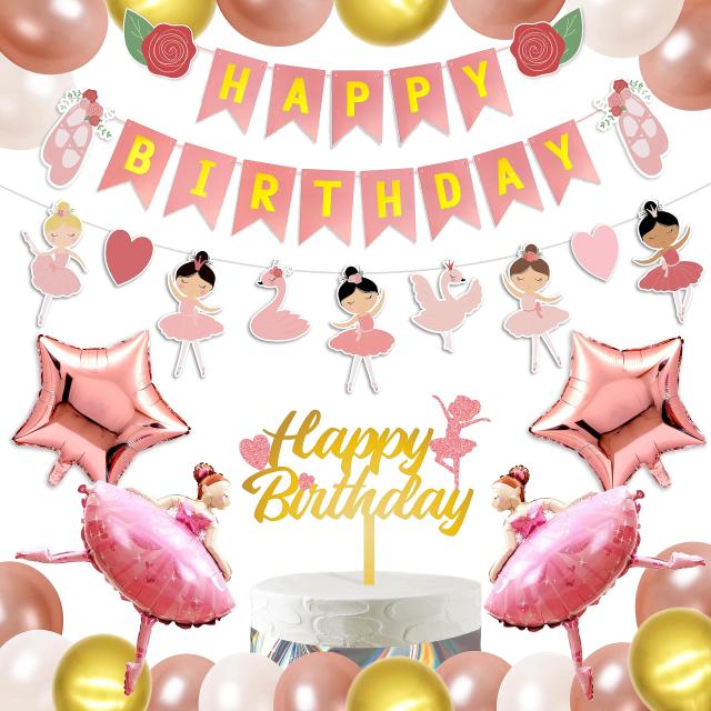 HaHaHa! バレエ 誕生日 飾り付け バルーン セット 女の子 バースデー パーティー デコレーション HAPPY BIRTHDAY 風船 ガーランド ケーキ