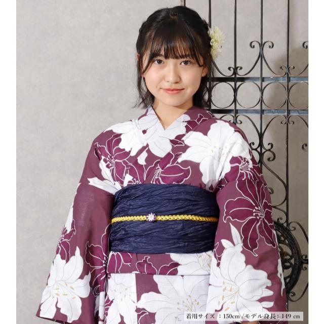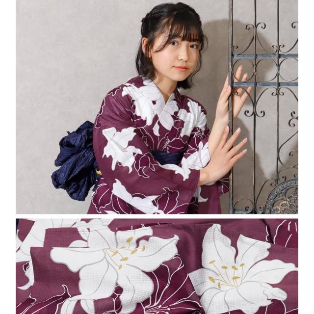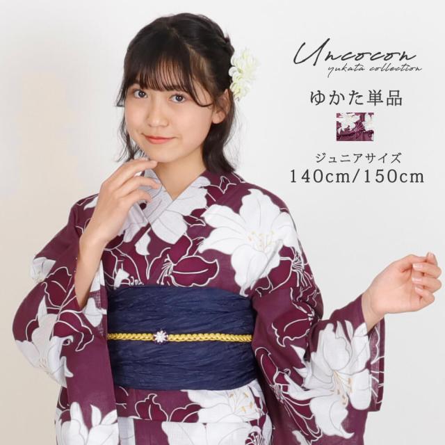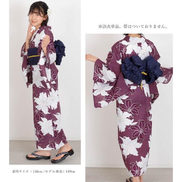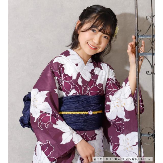 子供浴衣 単品 ジュニア ジュニア浴衣 子供 浴衣 女の子浴衣 140 150 160 レトロ お洒落 紫 百合 パープル