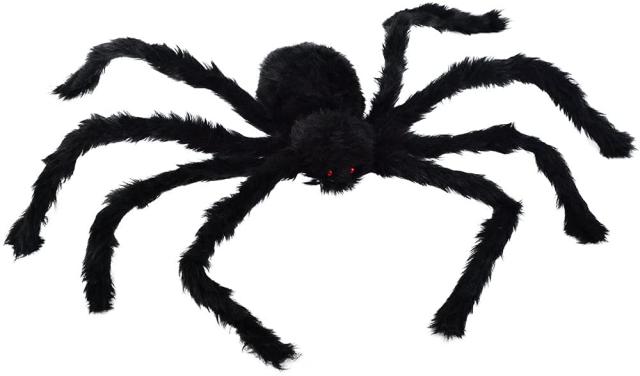 ??【黒蜘蛛 クモ スパイダー 巨大】 ハロウィンの蜘蛛は、ぬいぐるみと鉄の針金でできた、ひどい赤い目と黒い毛皮のような外観をしています。 蜘蛛の足は自由に曲がったり伸びたり。 ゴーストカーニバル、仮装パーティー、ハロウィーンで子供と大人の注目を集め、ハロウィンパーティーやいたずらのための完璧な赤い目、を備えた大型怖いクモ。