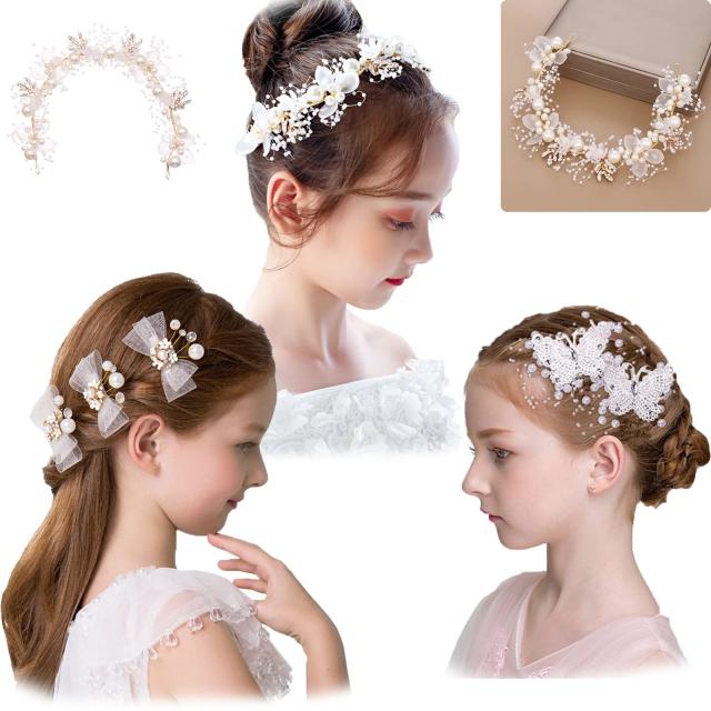 ◆商品名:Odowalker 3点セット 子供 髪飾り ヘアアクセサリー 結婚式 髪飾り 子供 発表会 髪飾り こども ヘッドドレス ヘアピン 髪留め パール 写