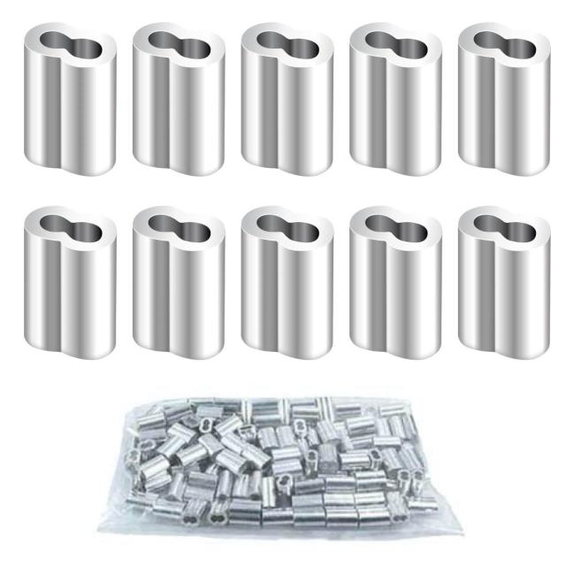 ワイヤーロー プスリーブ 2mm 150個パック アルミ製ワイヤーロープ固定スリーブ オーバル形状 圧着機対応 アルミニウム合金 クランプ用具