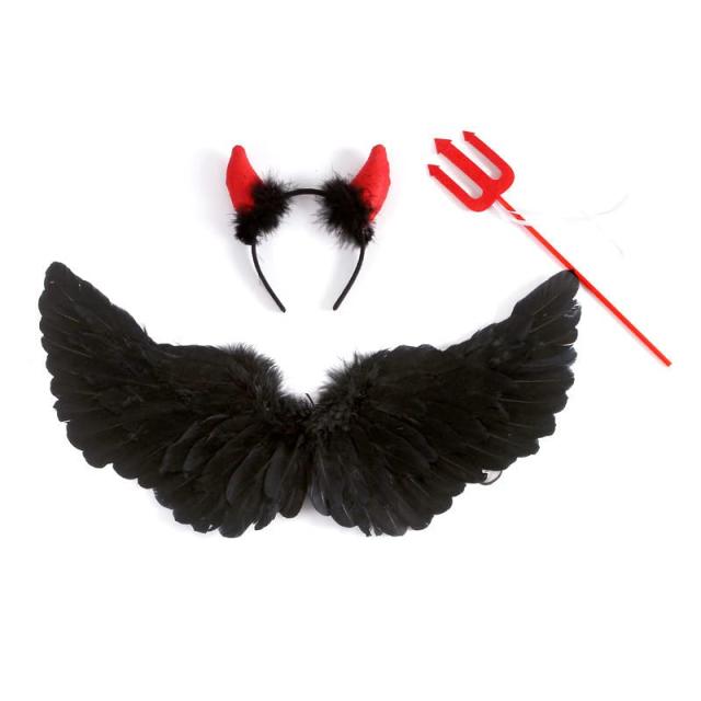 [FTXJEHG] 悪魔の翼 天使の翼 コスプレ 天使の羽 悪魔の翼 人工羽毛 カチューシャ 仮装 コスチューム エンジェル 魔法スティック ハロウ