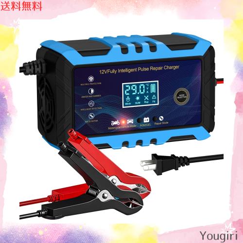 12Vバッテリー充電器 車/バイク バッテリー充電器 自動バッテリーチャージャー パルス充電器 6A充電電流 4-100Ah鉛蓄バッテリー用 LED表