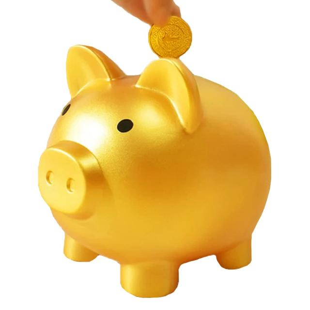 金色 貯金箱 ぶた 豚 ラッキーアイテム 開運 ピギーバンク 何度でも取り出せる 置物 子供 プレゼント 小銭いれ (14cm×15cm×12.5cm)