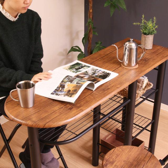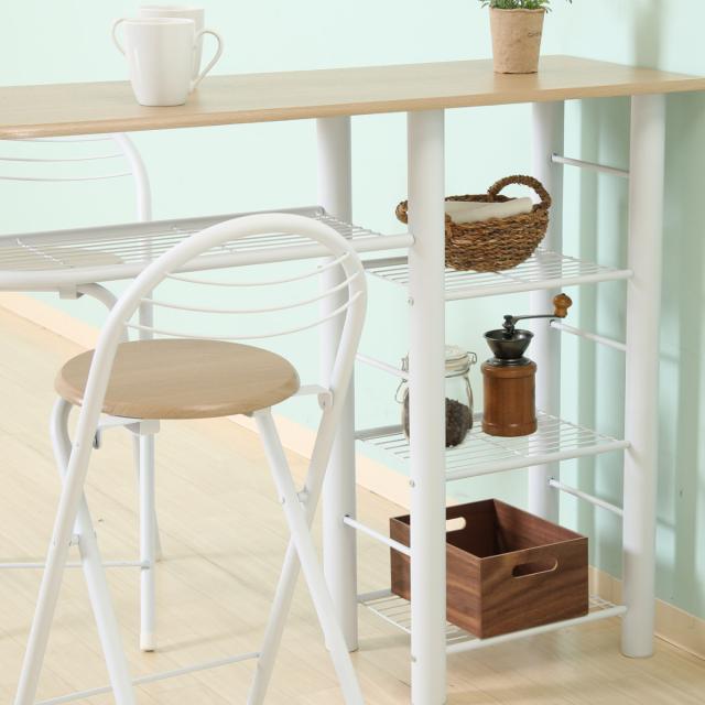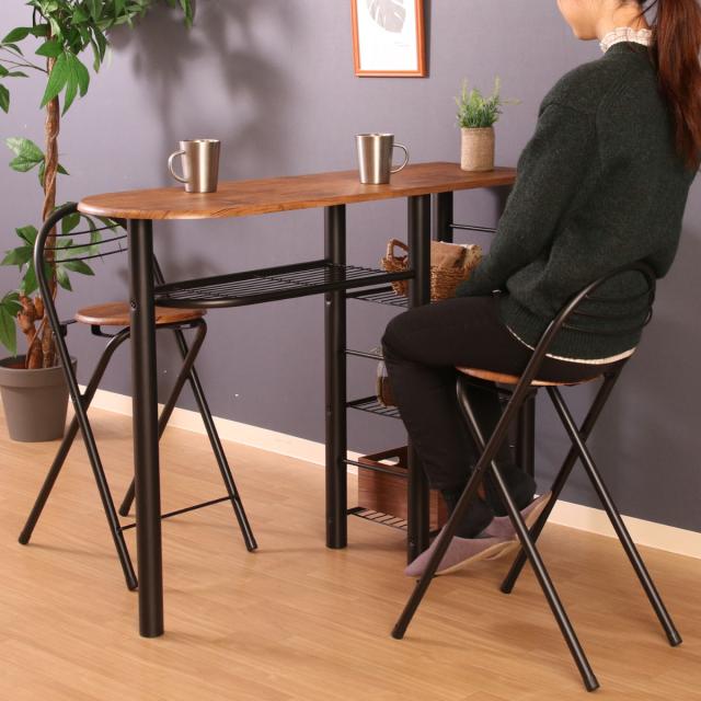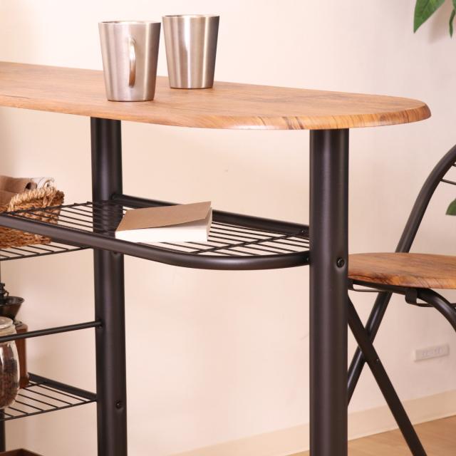 カウンターテーブル 3点セット 棚付 テーブル×1 チェア×2 ( キッチンカウンター 収納 ラック バーカウンター カウンター ハイテーブル セット ダイニング バー カフェ カウンターチェア 折りたたみチェア )