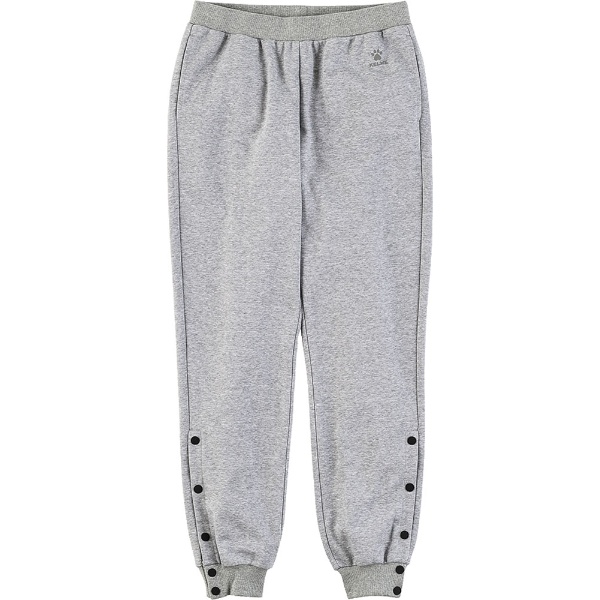スウェットパンツ裾スナップボタン付、両サイドポケット付。コットン、ポリエステル裏毛