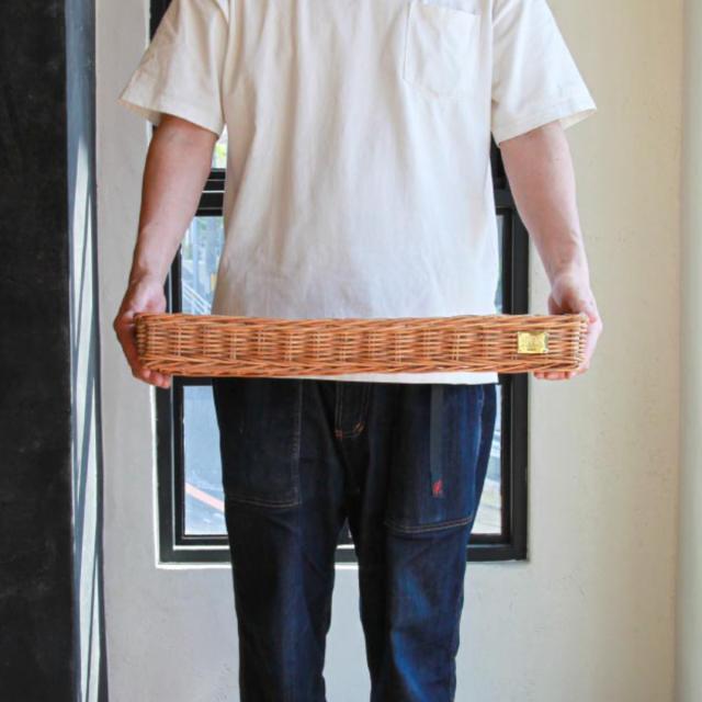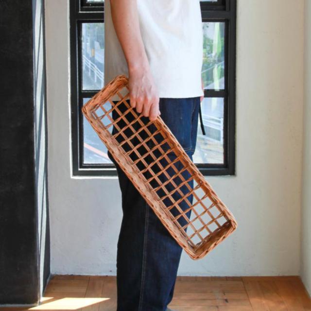 皮付きラタン使用して、職人が1点1点手編みで仕上げています。ラタンは強さとしなやかな柔軟性を兼ね備え、軽くて扱いやすいです。年数がたつほど深く色が落ち着いていき、経年変化を楽しめるのも魅力のひとつです。