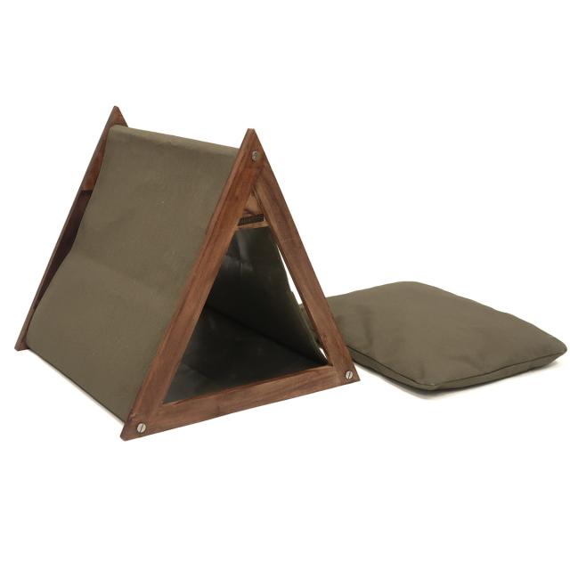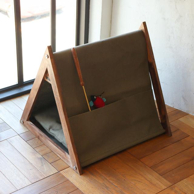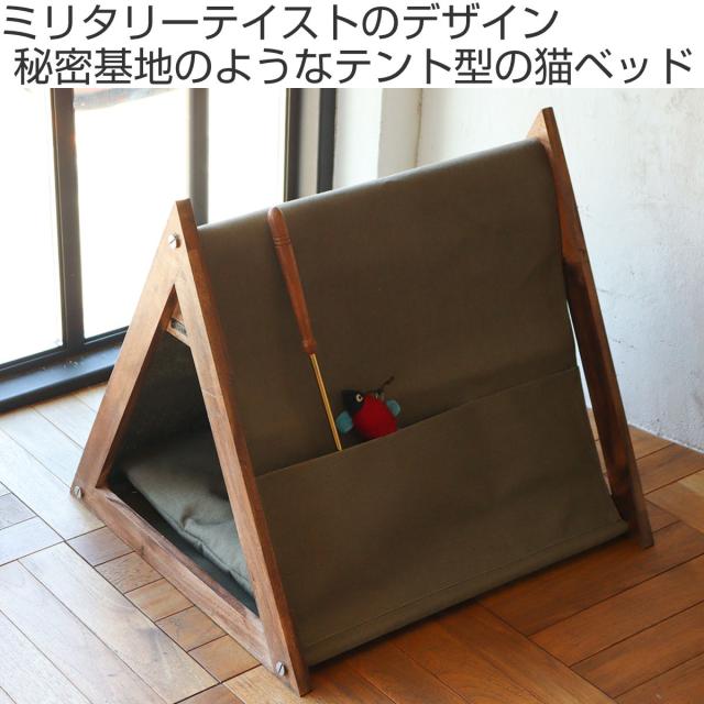 ベッド 猫 三角テント クッション付き 洗える ( ペットベッド 猫用ベッド 猫用 ペット用 テント型 クッション付 おしゃれ ペットハウス ハウス 猫ベッド ソファ シンプル ミリタリー インテリア )