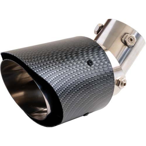 ●汎用設計モデルで下向きマフラーの直径サイズ42〜56mm対応、高品質ステンレス製本体にカーボン調カバー。