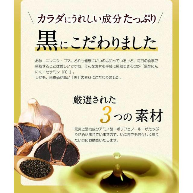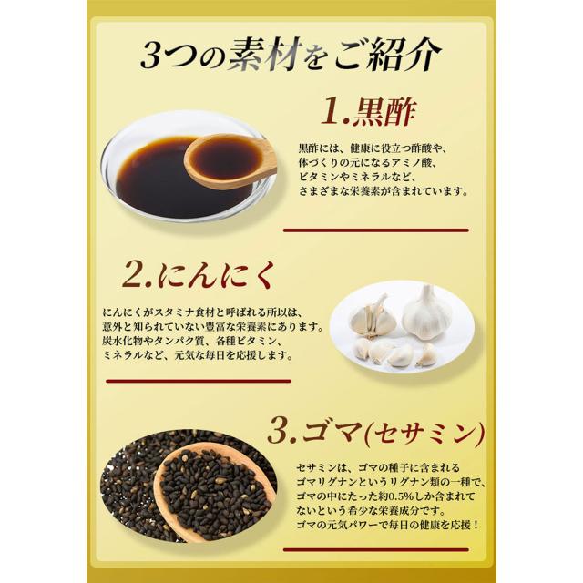 古来から受け継がれてきた伝統素材である、黒酢、黒にんにく、黒ゴマを凝縮しました。