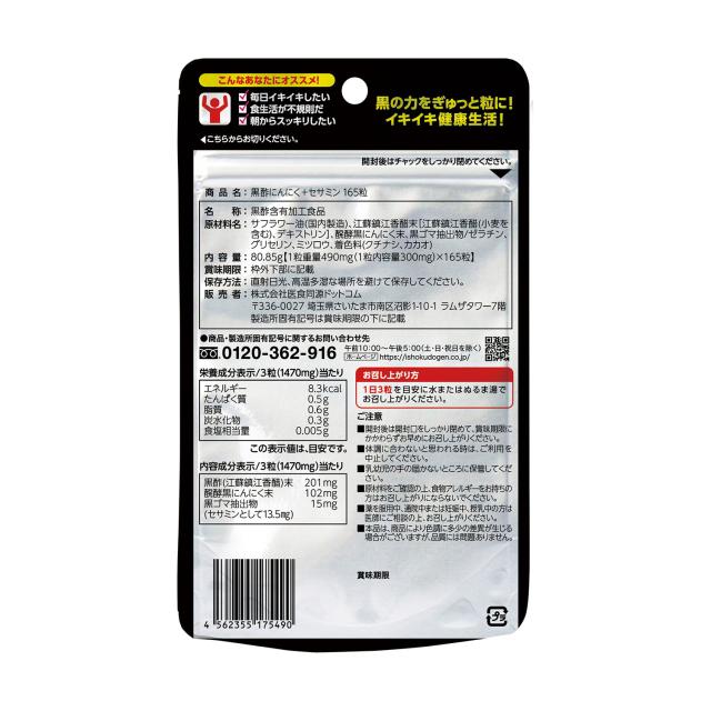 【165粒 55日分】黒酢にんにく+セサミン お徳用2,030円(税込) |
