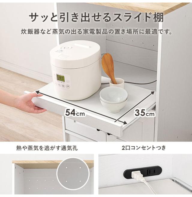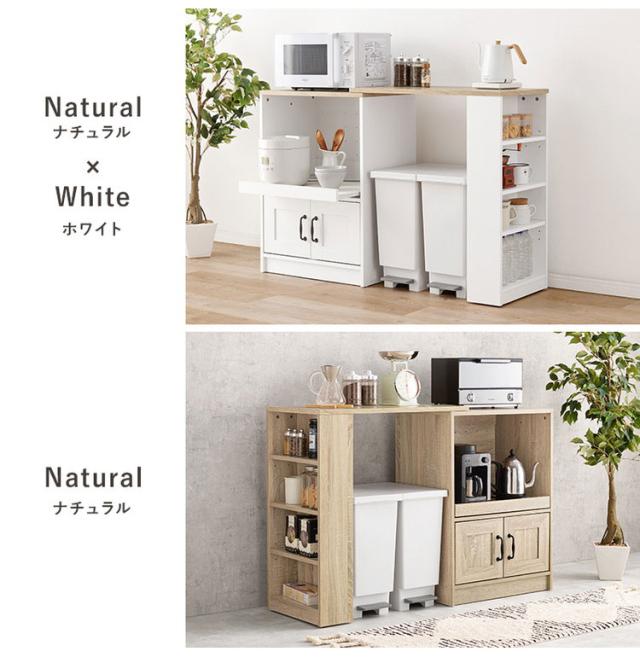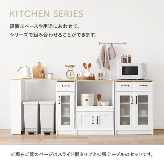 カントリー調 伸縮キッチンカウンター 2点セット 幅73.5~121.5 スライド棚 2口コンセント 扉収納 食器棚 可愛い かわいい 北欧 おしゃれ アンティーク調 棚 ラック ごみ箱上ラック ゴミ箱上ラック(代引不可)【送料無料】