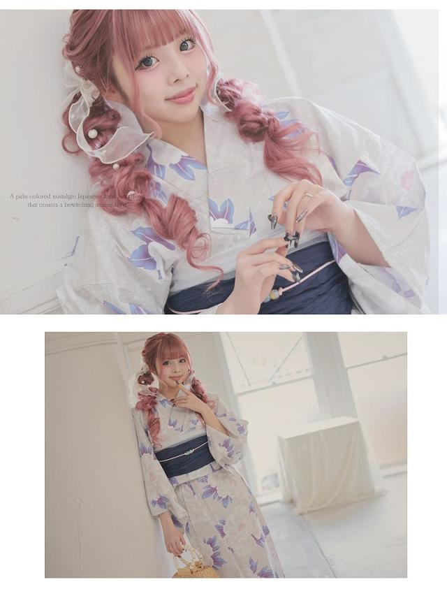 浴衣:綿100%、帯:ポリエステル100%