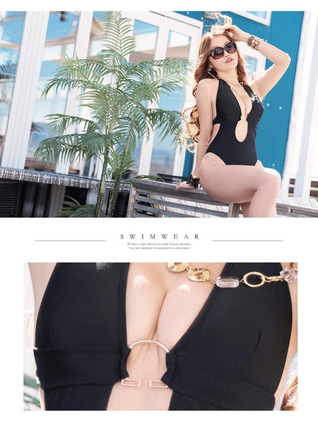 ☆エロさ際立つ黒色水着はホルターネックデザインのモノキニだからバストが盛れるの間違いなしのキャバ水着♪