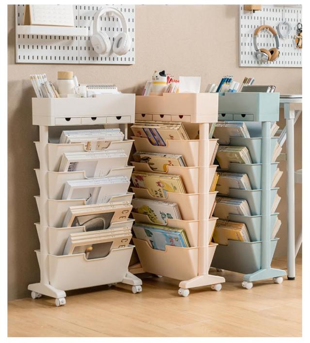 本棚 収納ワゴン ブックシェルフ スリム 6段 すきま収納 収納ラック サイド収納棚 回転 大容量 デスクサイド収納 仕切り 収納ラック ブックスタンド ワゴン キッチンワゴン 引き出し付き 漫画 雑誌 文具 水筒