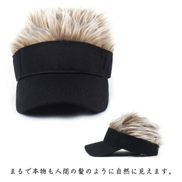 サンバイザー ウィッグ付き ウィッグ かつら 髪付き帽子 ウイッグキャップ ヘア帽子 カツラ付き帽子 短め ウィッグ付き帽子 おしゃれ 一体式 ヘアバイザー 自然 コットン 頭周り56-61cm調節可 帽子 注目 コスプレ 変装 ファッション 使いやすい メンズ カッコイイ