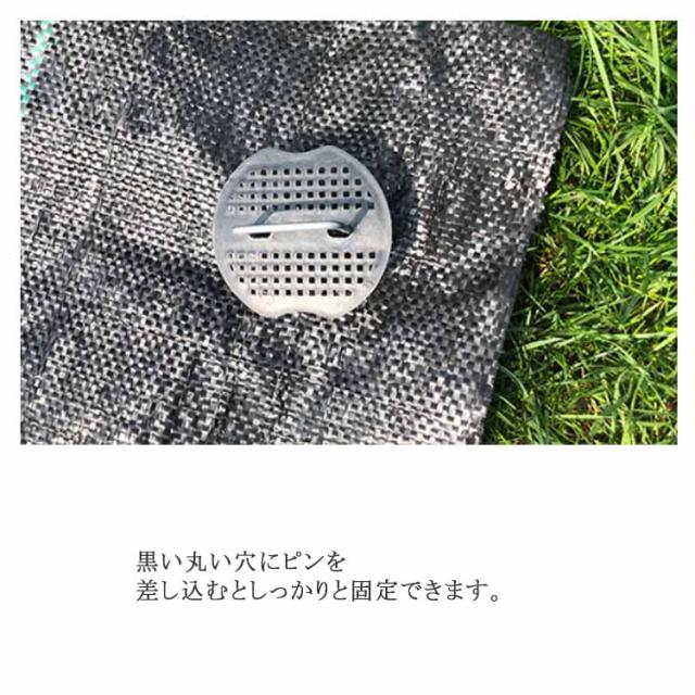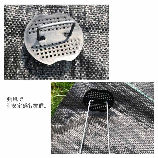 | 黒丸付きの防そうシート100本セット! ピンは硬い地面に刺さりやすいように先端を尖らせています。 黒い丸い穴にピンを差し込むとしっかりと固定できます。 強風でも安定感も抜群。 スチール製のピンは、亜鉛メッキ処理をした材料を使っています。 作業時間の短縮にも! | |