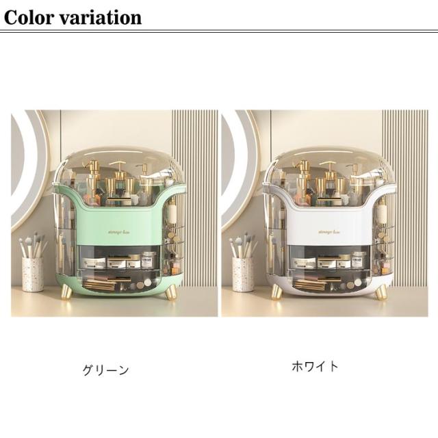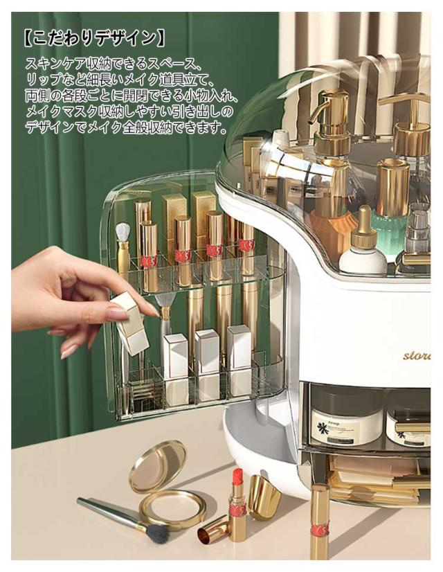 | 【たっぷり収納力】コスメボックスは大容量収納設計で高さ20cmのスキンケアからリップなど細小な物までたっぷり収納できます。一目瞭然で使用しやすいです。 【仕切りが充実】メイク収納ケースは仕切りが付いて、それぞれのアイテムごとに分類してすっきり収納しています。必要なものがさっと取り出せます。朝の時間はかなり忙しいので、これがあれば助かります。 【クリアカバー付き】化粧ボックスは蓋付きで、ホコリやウイルスから化粧品を守ります。サッと拭くだけで汚れがキレイに落ちます。洗面所に置いても使用可能!クリアカバー設計で化粧箱中身をよく見え、ショーケースにもなります。 【こだわりデザイン】スキンケア収納できるスペース、リップなど細長いメイク道具立て、両側の各段ごとに開閉できる小物入れ、メイクマスク収納しやすい引き出しのデザインでメイク全般収納できます。 【おしゃれ】インテリアに馴染みやすいホワイトとグリーン2色ご用意できます。高級感のあるゴールドの引手と脚を採用でオシャレ感も溢れております。 | |