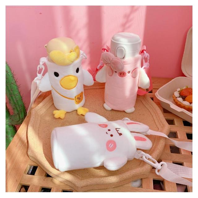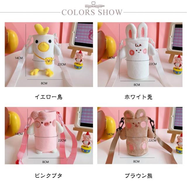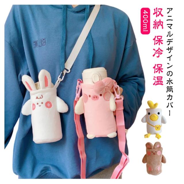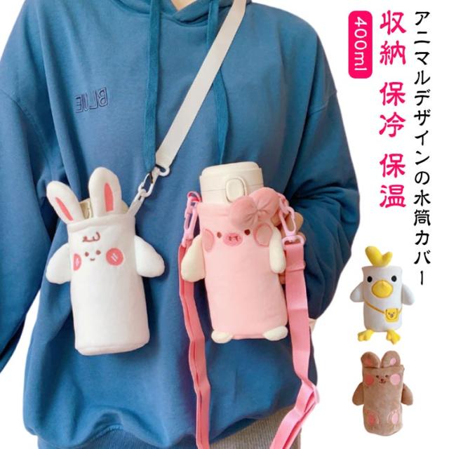 ストラップ 動物 収納 ショルダー ボトルカバー 保温 ボトルケース 水筒ホルダー 保冷 学校 ペットボトルケース ペットボトルカバー 水筒カバー ウサギ 可愛い 肩掛け 持ち運び 子供 400ml 小学生 遠足 クマ 豚 水筒ケース 鳥 羊 癒し