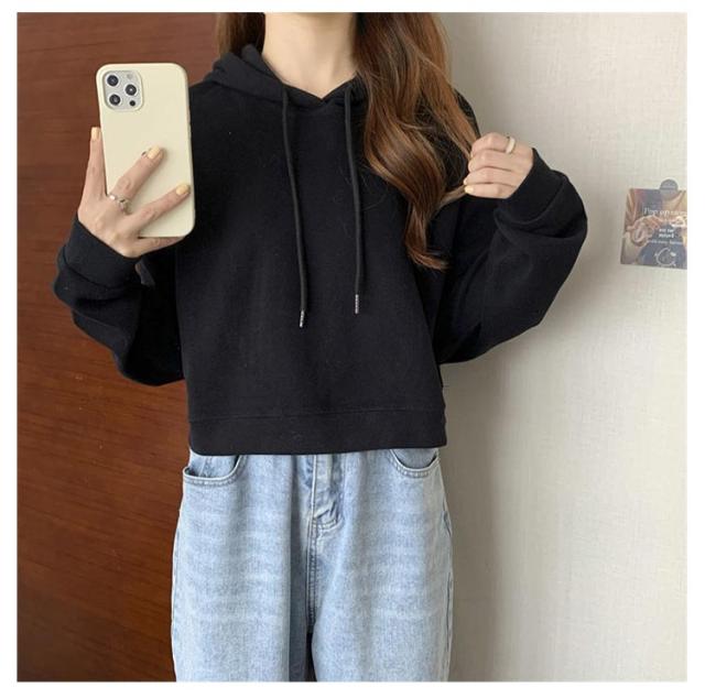 ショート丈パーカー パーカー レディース ジャージ カジュアル ショート丈 長袖パーカー パーカー 無地 長袖 薄手 おしゃれ プルオーバー ショート丈 プルオーバーパーカー 無地 春秋 重ね着 トップス パーカー 春 秋 フード付きパーカー シンプル 可愛い