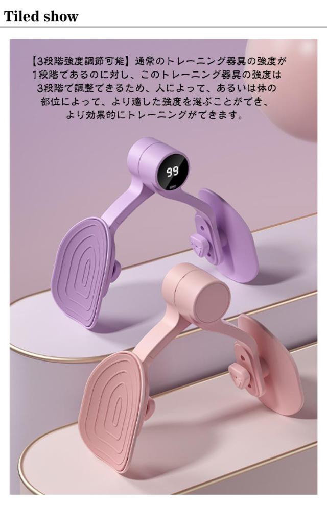 | 【美尻シェイパー】【挟むだけ】【回数カウンター付き】 【3段階強度調節可能】通常のトレーニング器具の強度が1段階であるのに対し、このトレーニング器具の強度は3段階で調整できるため、人によって、あるいは体の部位によって、より適した強度を選ぶことができ、より効果的にトレーニングができます。 【より広い力作用面積】人間工学に基づいて設計されたトレーニング器具は、体との接触面積が広く、体の曲線に近い形でフィットします。 その結果、運動中の筋肉への負担が少なく、長時間の運動でも痛くありません。 【柔らかいTPR素材】レーナーのパッドには、人間の肌感覚に近く、非常に柔らかい素材であるTPRを採用し、体へのやさしさを実現します。 そのため、より優れた保護性とクッション性を発揮し、運動時の快適性を向上させます。 【複数の運動用途】体の特定の部位を鍛えたい方や、産後に運動したいママに最適なダイエット器具です。 太ももやお尻を鍛え、骨盤の位置を矯正するのに役立ちます。 また、ふくらはぎ、腕、手首の筋肉にも使えるので、多目的に使用できます。 【回数カウント】運動回数や消費カロリーを記録できるカウンターが追加されており、より良いトレーニングの計画や調整に役立てることができます。USB充電可能。 | |