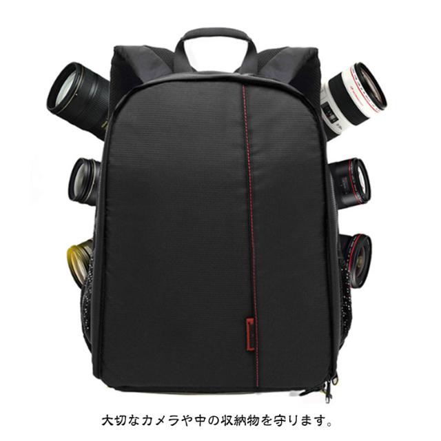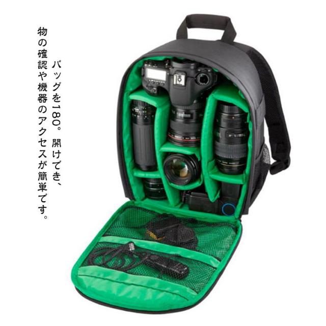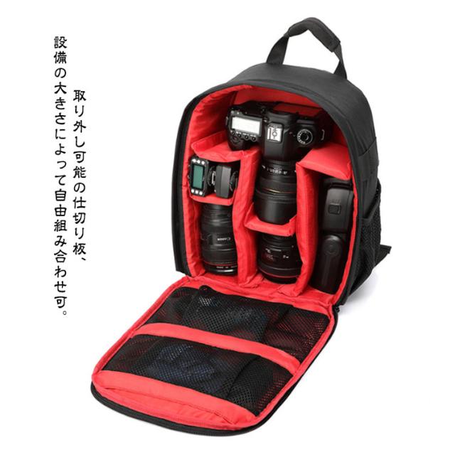 | 【カメラバッグ】【防水】【5colors】 バッグを180°開けでき、物の確認や機器のアクセスが簡単です。 取り外し可能の仕切り板、設備の大きさによって自由組み合わせ可。 通勤バッグ、日常用バッグとしても使える。 バックは防水ナイロン製、大きく強化されたステッチ、頑丈で耐久性があり、カメラ機器を安全保護します。 簡易防水加工により突然の雨にも対応可能! 大切なカメラや中の収納物を守ります。 外し可能な厚い仕切り板は衝撃に対応強いです。 カメラバッグとして使うことも、普通のバックとして使うこともできます。 写真愛好家、アウトドア旅行者に最適なリュックです。 | |