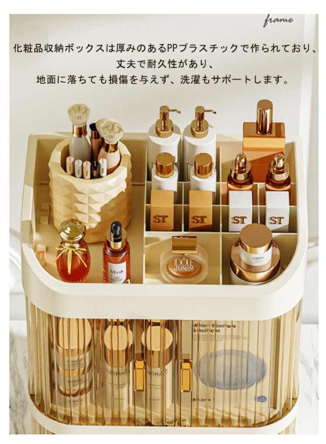 | メイク用品をたっぷり入る大容量の化粧品収納ボックスです。 化粧品収納ボックスは厚みのあるPPプラスチックで作られており、丈夫で耐久性があり、地面に落ちても損傷を与えず、洗濯もサポートします。 透明なので中身が一目瞭然。物を探しやすく、整理もしやすいです。 化粧品だけじゃなく、メイクブラシなどの道具もスッキリ整理して収納できます。 水洗いしやすく、汚れても拭くだけで綺麗になります。 ベッドルーム、バスルーム、ドレッサーなどに置けます。 | |