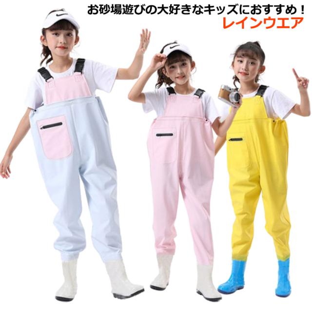子供 お砂場着 レインウエア プレイウェア オーバーオール お砂場着 レインパンツ レインシューズ レインブーツ 砂場 キッズ ロンパース 胴付長靴 サロペット 一体型 オーバーオール 雨靴 遊び着 子供用 砂場着 公園 遊び着 防水 防風 防汚 雨具 防水 梅雨