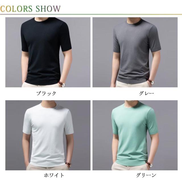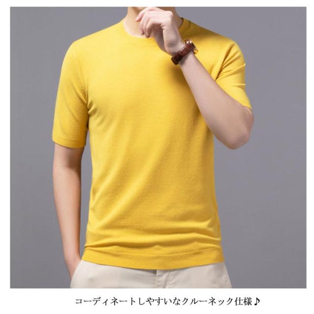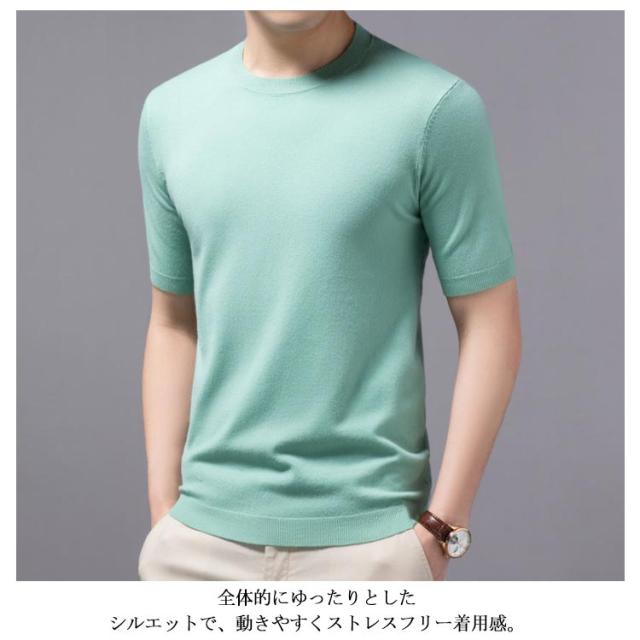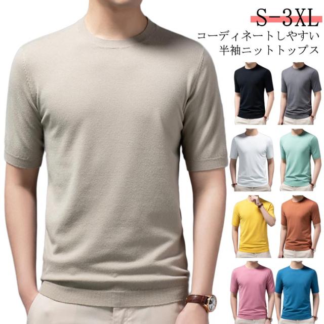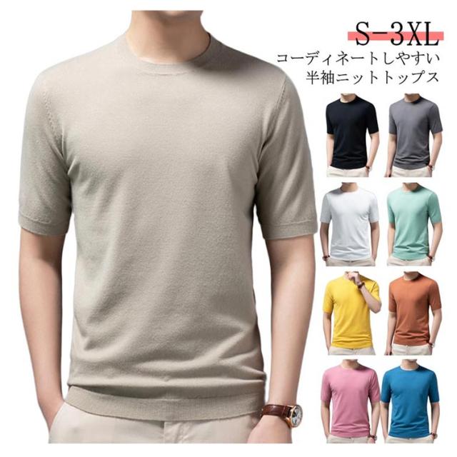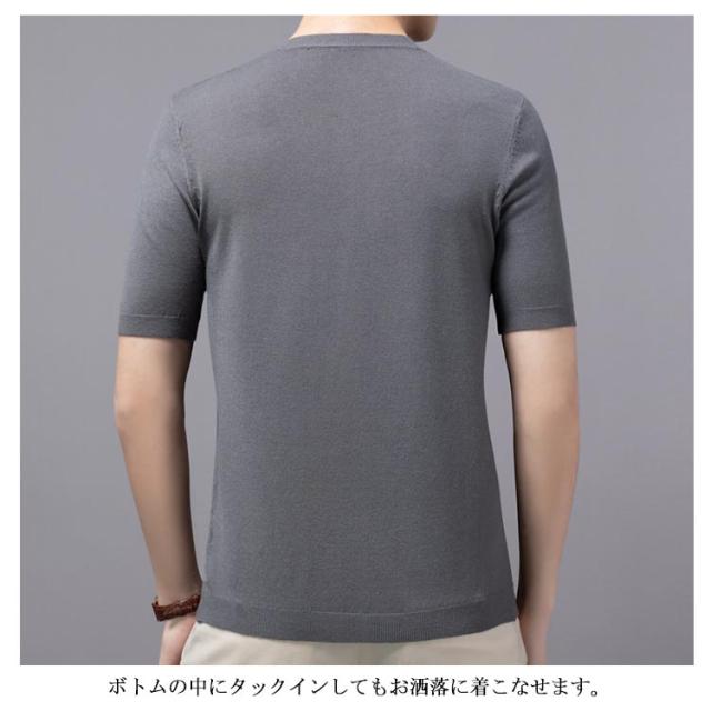 クルーネック 上品 プルーオーバー 冬 ニットセーター サマーセーター 半袖 薄手 メンズ ニットセーター カジュアル おしゃれ 父の日 無地 ニットTシャツ トップス サマーニット レイヤード 春 夏 秋 送料無料