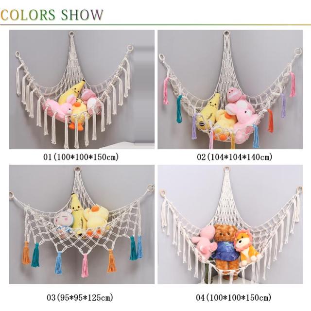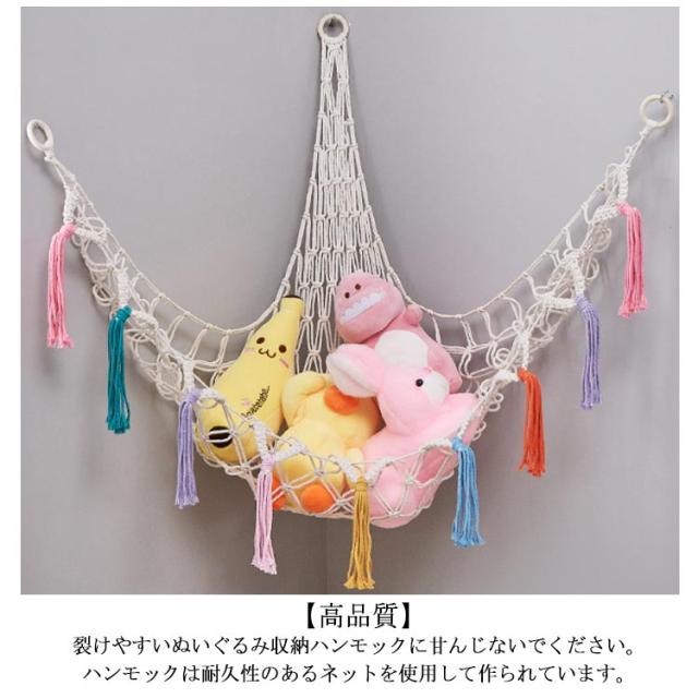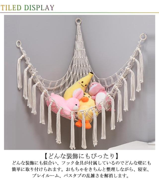 ネット ランドリーラック ぬいぐるみ おもちゃハンモック ぬいぐるみ ネット ディスプレイ ハンモック 収納用 子供部屋 隙間収納 ラック 絵本 吊り下げ式 インテリア ハンモック 玩具 お片付け 省スペース おもちゃ箱 デッドスペース おしゃれ フリンジ