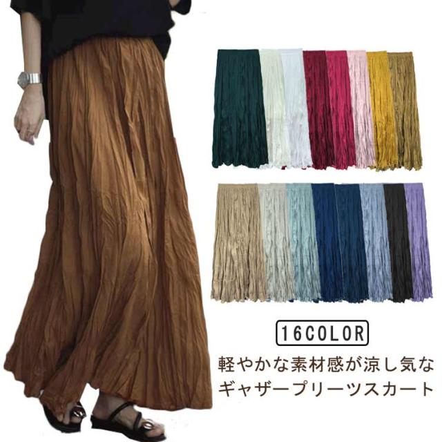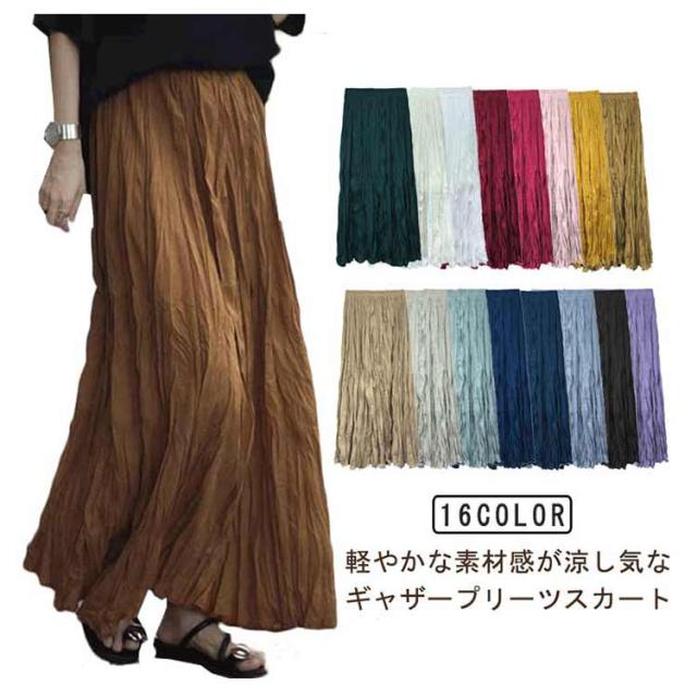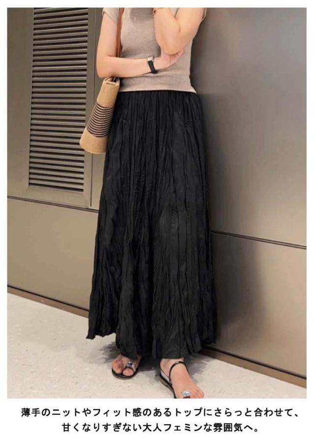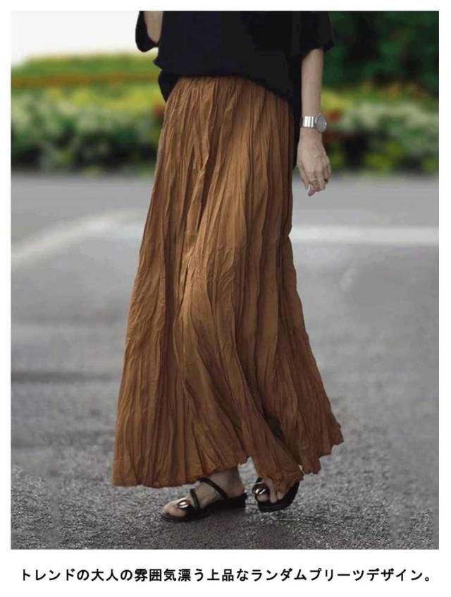 ロングスカート 光沢感 レディース フレアスカート プリーツスカート お出かけ マキシスカート ランダムプリーツ お洒落 裏地 ボトムス プリーツスカート ウエストゴム 可愛い 上品 大人カジュアル 20代 30代 40代 50代 女性 レディース