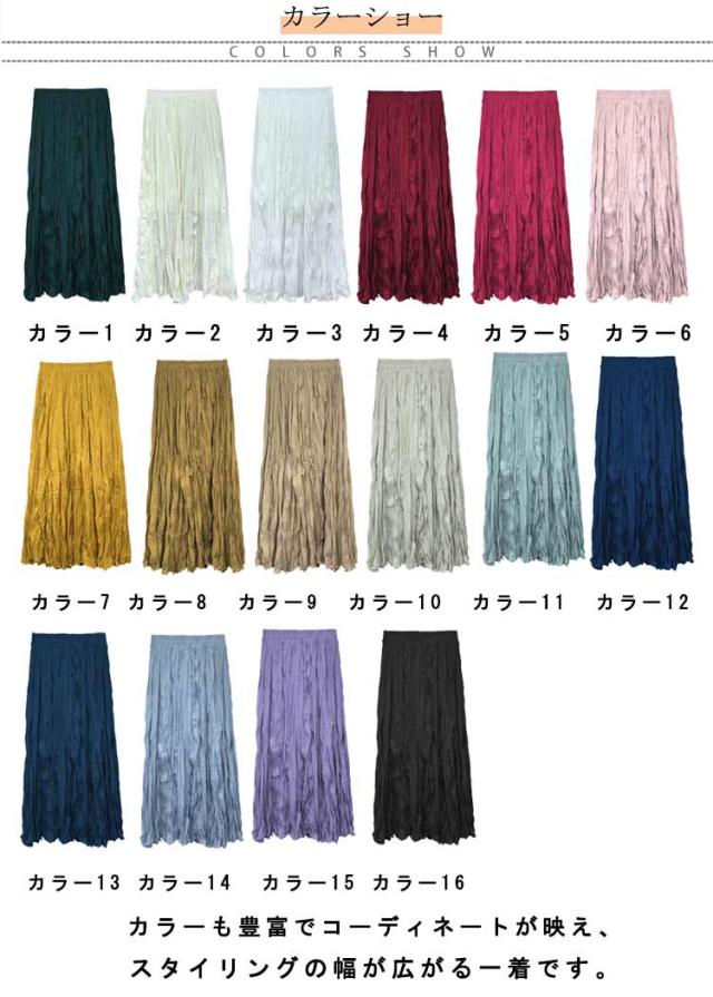 | サイズについての説明 | ウェスト62-100cm スカート丈90cm ※サイズ表の実寸法は商品によって1-3cm程度の誤差がある場合がございます。 |
