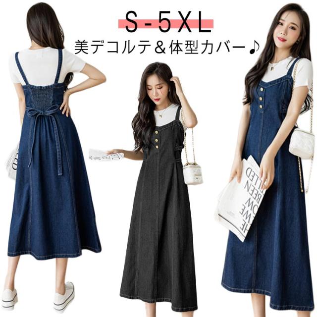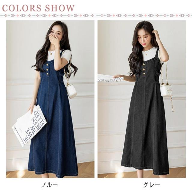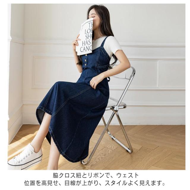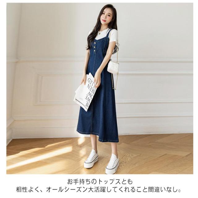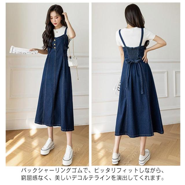 ロング丈 フレア デニム ワンピ サロペットスカート ミモレ丈 Aライン デニムワンピース デニム キャミワンピ デニム 20代30代40代 レディース フレアワンピース ロングフレアスカート ノースリーブ ロングスカート デニムスカート