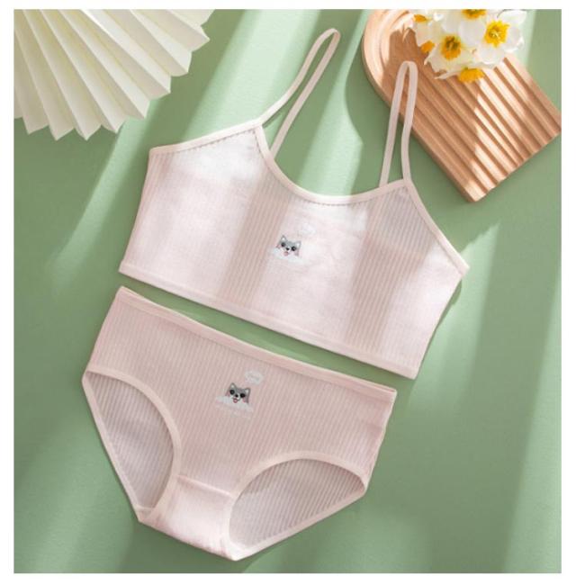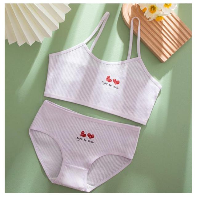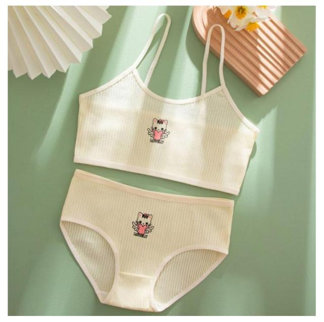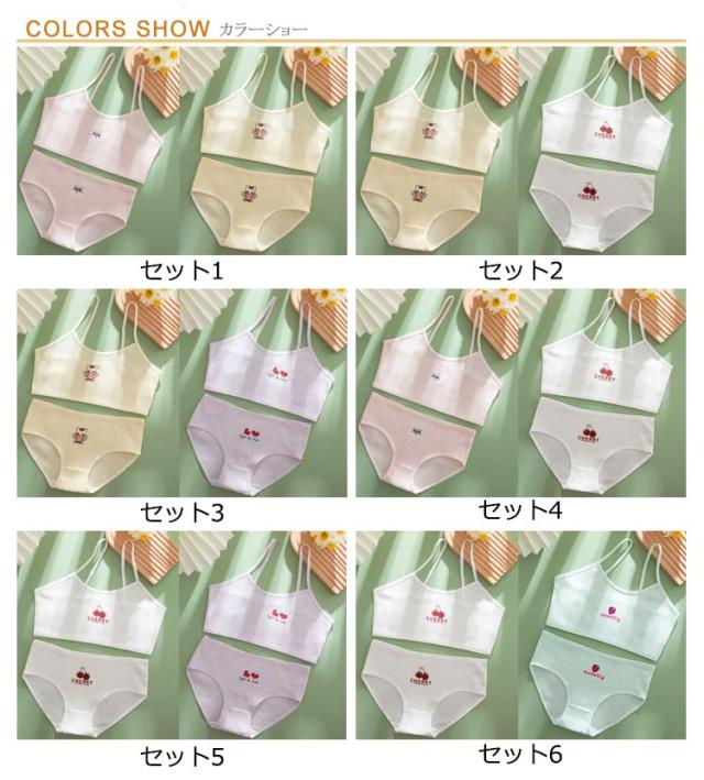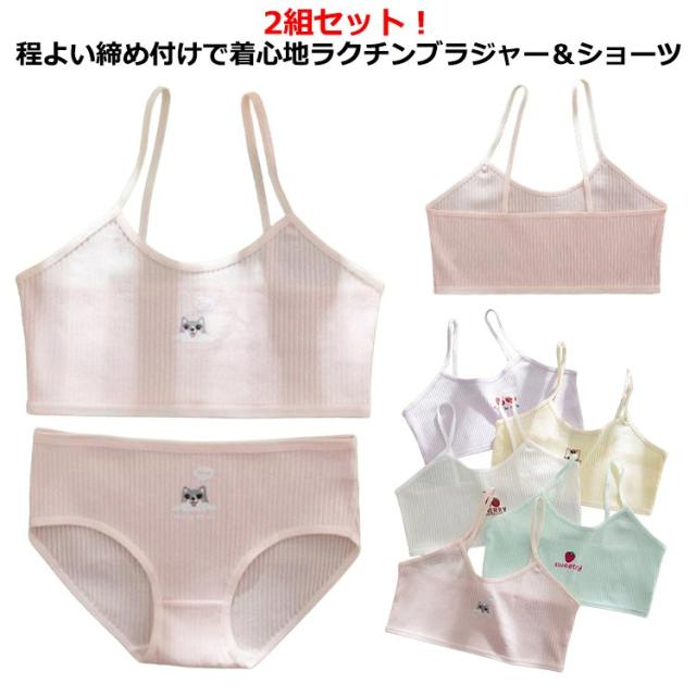 インナー 2組ブラジャー&ショーツ!ジュニアブラ スポーツブラ 中学生 女の子 キャミソール 2組ブラジャー&ショーツ!ジュニアブラ 高校生 綿 上下セット セットアップ 下着 ジュニア キッズ 小学生 キッズブラ タンクトップ 吸水速乾