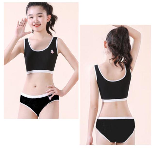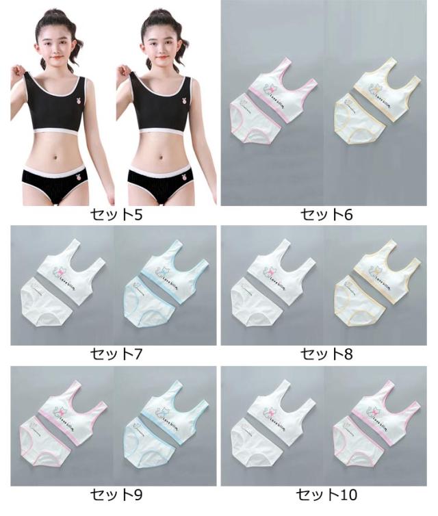 キッズ 女の子 ナイトブラ 綿 リブ スポーツブラ 子供 下着 ジュニア 2組ブラジャー&ショーツ!ジュニアブラ 上下セット セットアップ キャミソール インナー タンクトップ 肌着 女の子 2組ブラジャー&ショーツ!