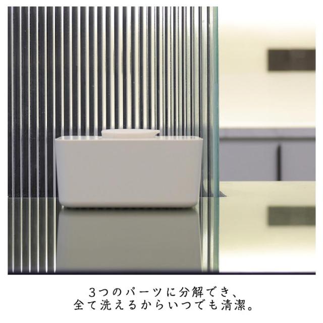 | お尻拭きケースのほか除菌シートでも使える蓋付きで中身が乾かないおしゃれな収納ケース 詰め替えに便利な大きな開口部分はシリコン製パッキンで密閉されるので乾燥の心配がありません。 ABS樹脂製の本体は傷の目立ちにくいマットな仕上げで、シンプルで柔らかいシルエットのプロダクトです。 3つのパーツに分解でき、全て洗えるからいつでも清潔。 底面には4つの滑り止め付き。滑りにくいのでノンストレス。 ケースの蓋を外して、詰め替えのウェットシートをそのまま入れるだけ。 除菌シートやトイレ掃除シート、おしりふきなど、いろいろなシートが袋ごと入ります。 シンプルなデザインだからリビングや洗面台、寝室など様々な場所で使える。 | |