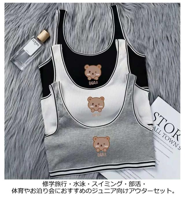 | 学生高学年〜中学生向け女の子用下着セット。 スポーツブラとパンツの上下2点セットです。 綿混素材で気持ちいい肌触り。 修学旅行・水泳・スイミング・部活・体育やお泊り会におすすめのジュニア向けアウターセット。 伸縮性のあるノンストレスな着心地。体にピッタリフィットして揺れないのでダンス衣装のインナーとしても大活躍! | |
