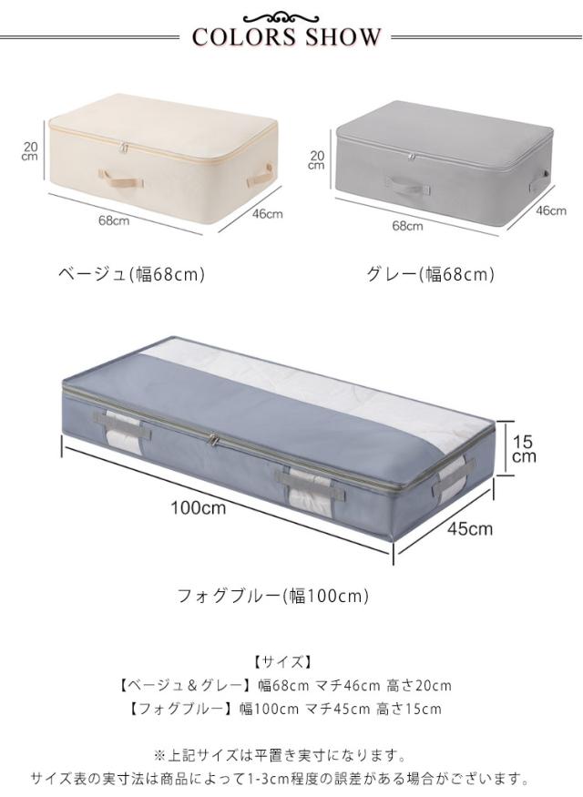 | サイズについての説明 | 【サイズ】 【ベージュ&グレー】幅68cm マチ46cm 高さ20cm 【フォグブルー】幅100cm マチ45cm 高さ15cm ※上記サイズは平置き実寸になります。 サイズ表の実寸法は商品によって1-3cm程度の誤差がある場合がございます。 |