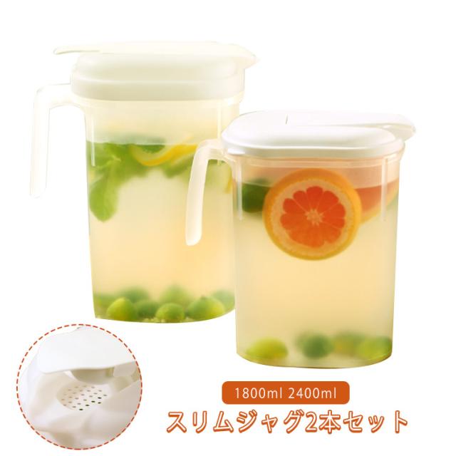 2本セット サーバー 2400ml 業務用 冷水筒 スリムジャグ ウォーターピッチャー 麦茶ポット お茶ポット 冷水ポット 冷蔵庫 蓋付き 広口ポット ウォーターピッチャー ラーメン おしゃれ 水差し ドリンク ピッチャー ポット