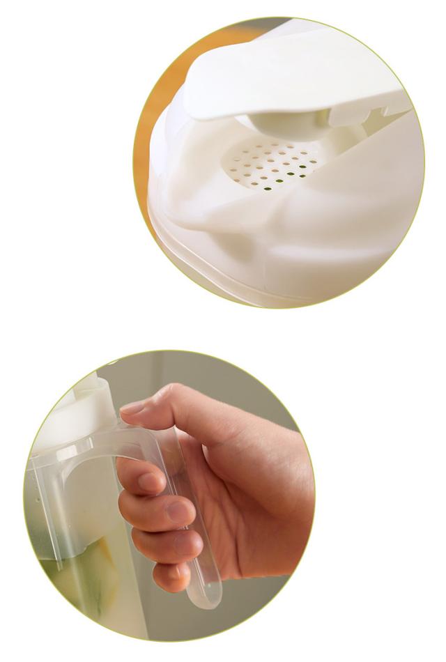 | ・スリムジャグ2本セット ・取っ手付きなので持ちやすく、冷蔵庫のドアポケットに収まる冷水筒です。 ・スリム設計なので、冷蔵庫のドアポケットにもスッキリ収まります。 ・熱湯を直接注ぐことができ、お茶の煮出しも簡単です。 ・中まで手を入れて洗いやすい広口タイプです。 ・シンプルなデザインなので、食卓においても場所をとりません。 | |