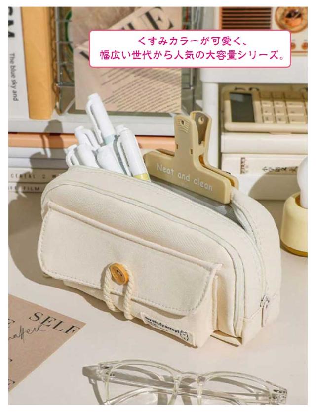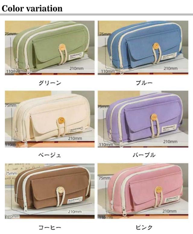 | 【大容量・多機能】【6colors】 よく使う勉強道具をたっぷり持てて、 でもコンパクトに整理して持てるペンケース お気に入りの文房具をたっぷり詰め込んで、楽しく勉強しよう! いろいろな文房具を使う人にオススメのペンケース♪ くすみカラーが可愛く、幅広い世代から人気の大容量シリーズ。 外側ポケット付き トレンドの韓国っぽさたっぷりで可愛いペンケース さまざまな品物を個別に整理できます。 使いやすく、品物を見つけやすい。 メインファスナーがぐるりと大きく開く | |