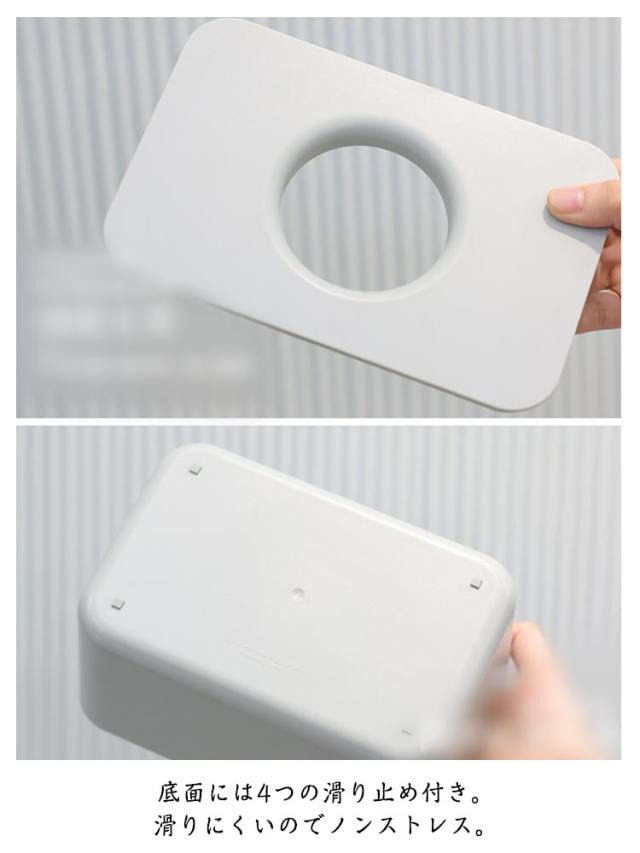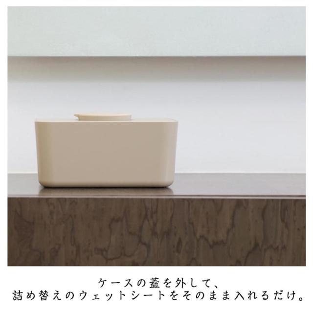 | お尻拭きケースのほか除菌シートでも使える蓋付きで中身が乾かないおしゃれな収納ケース 詰め替えに便利な大きな開口部分はシリコン製パッキンで密閉されるので乾燥の心配がありません。 ABS樹脂製の本体は傷の目立ちにくいマットな仕上げで、シンプルで柔らかいシルエットのプロダクトです。 3つのパーツに分解でき、全て洗えるからいつでも清潔。 底面には4つの滑り止め付き。滑りにくいのでノンストレス。 ケースの蓋を外して、詰め替えのウェットシートをそのまま入れるだけ。 除菌シートやトイレ掃除シート、おしりふきなど、いろいろなシートが袋ごと入ります。 シンプルなデザインだからリビングや洗面台、寝室など様々な場所で使える。 | |