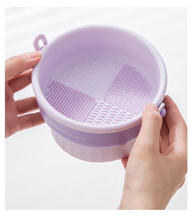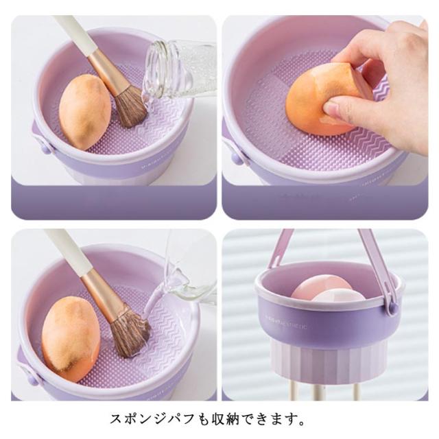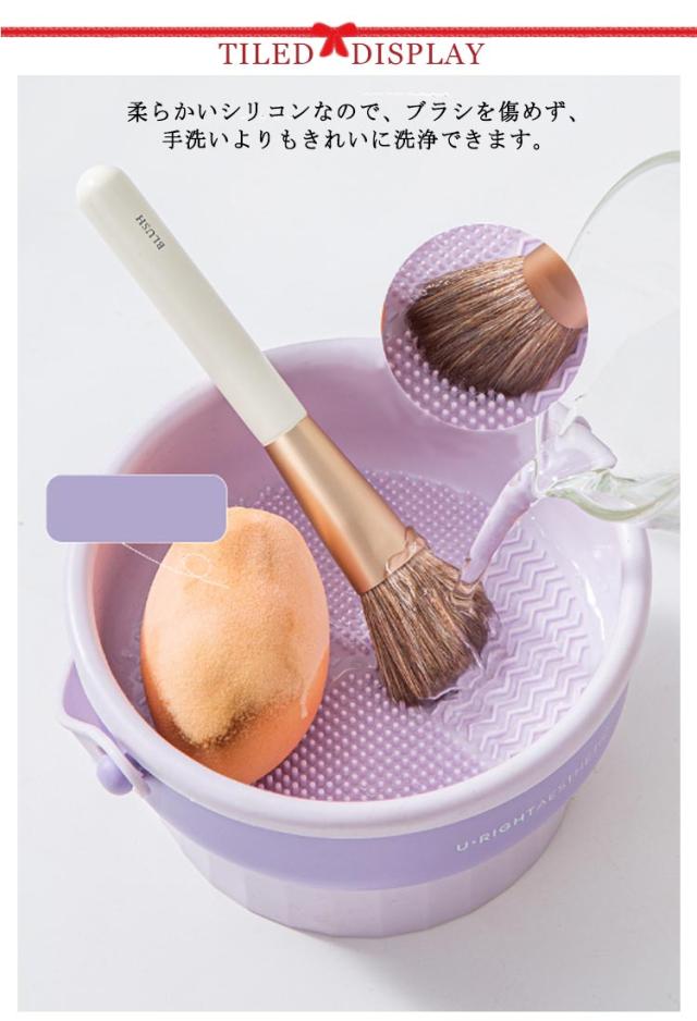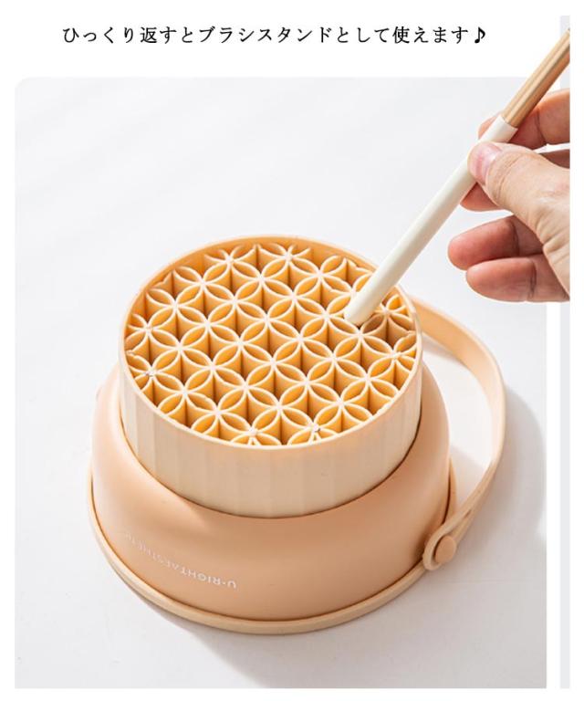 | メイクブラシの洗浄・乾燥・収納に!多機能3in1メイクブラシクリーナー 柔らかいシリコンなので、ブラシを傷めず、手洗いよりもきれいに洗浄できます。 メイクブラシ、パウダー用パフ、スポンジパフなどに使用できます。 スポンジパフも収納できます。 ひっくり返すとブラシスタンドとして使えます♪ | |