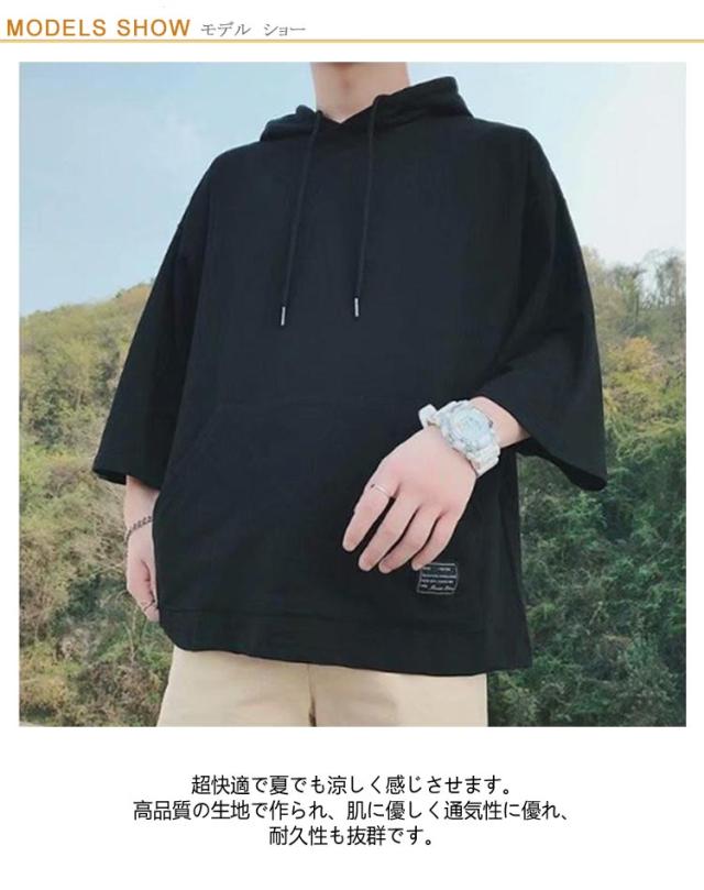 パーカー 夏服 韓国 メンズ プルオーバーパーカー フード付きtシャツ 半袖パーカー 薄手 半袖 夏 冷感 トップス 無地 シンプル 薄手パーカー 春服 白 黒 ホワイト ブラック 大きいサイズ
